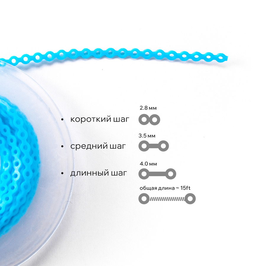 Цепочка эластичная — это активный элемент брекет-системы, способный продуцировать механические силы, которые определяют перемещения зубов вдоль дуги.